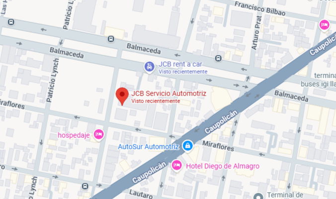 Estamos ubicados en la calle “General Pedro Lagos #91 en la comuna de Temuco, región de La Araucanía (IX), Chile”. Contamos con amplios espacios de guardado de vehículos y a nuestro lado el servicio complementario, JCB Rent a Car.